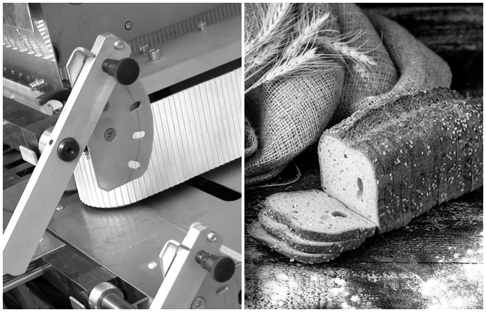 Хлеборезка и нарезанный хлеб. \ Фото: veldan.by. \ allstick.ru.
